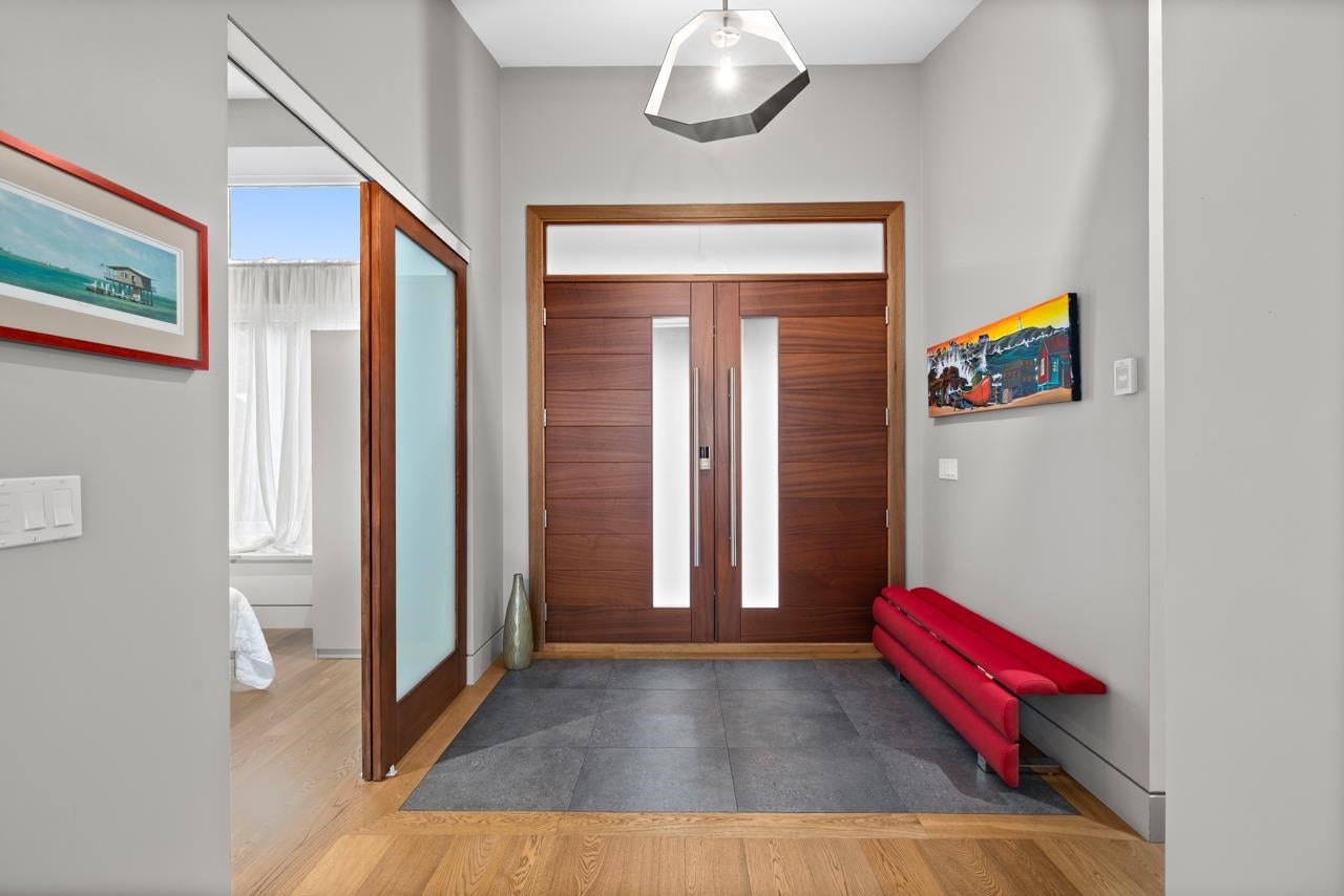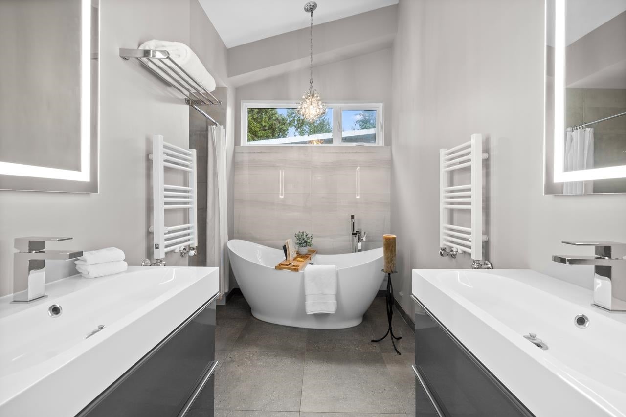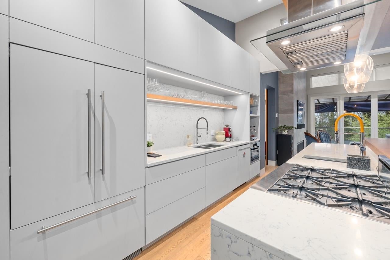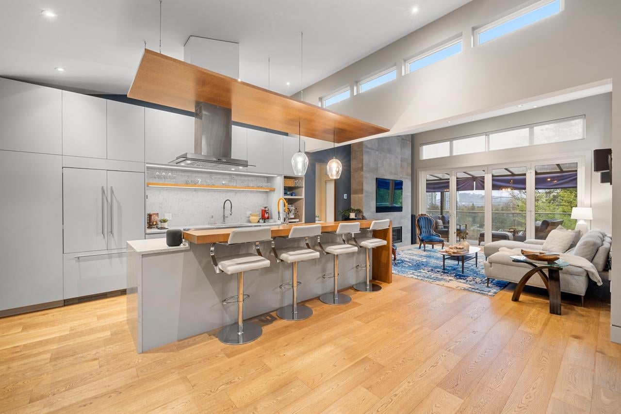 Exquisite custom-built West Coast Modern masterpiece showcasing exceptional craftsmanship and refined finishes throughout a thoughtfully designed, highly functional layout with hydronic heated floors throughout. The chef’s kitchen features premium cabinetry, striking waterfall countertops and elite appliances, perfect for seamless entertaining. Upstairs offers a luxurious primary suite plus two additional bedrooms. The lower level includes a media room, recreation space, flex room and wine cellar. Enjoy vegetable gardens, a private patio with hot tub and dedicated dog run. Complete with a 2-car garage and workshop with 13’ ceilings, plus a legal 2-bedroom suite. A rare offering. Open house Sunday, Apr 12, 2-4pm
